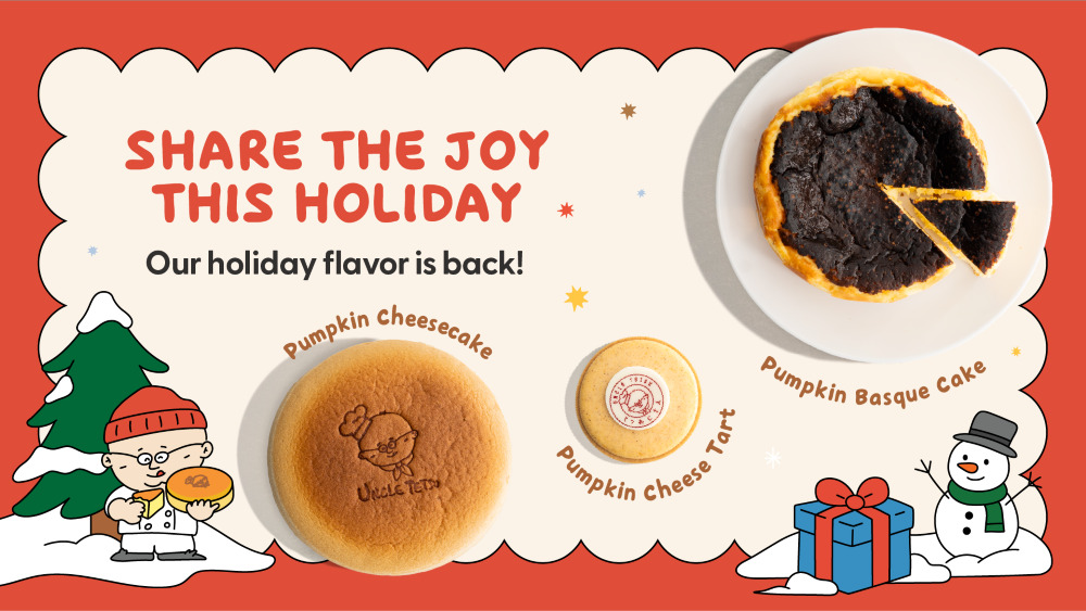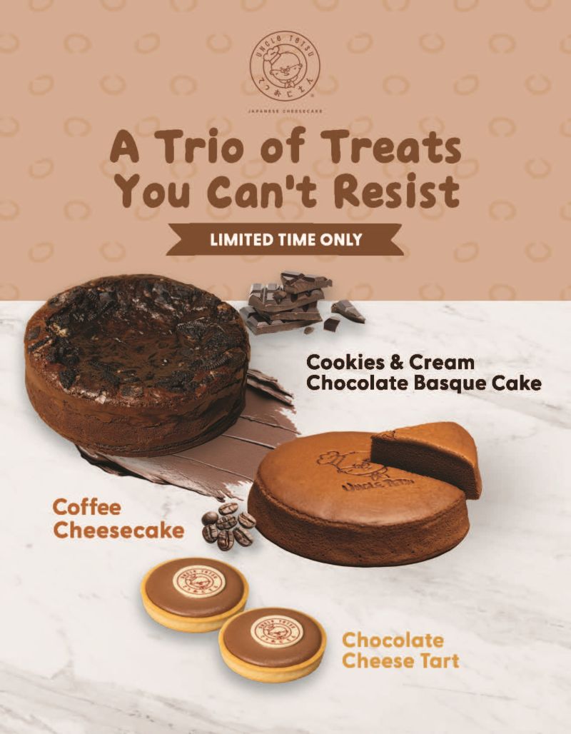 Cozy up this season with Uncle Tetsu’s fall trio of treats! 🍂✨Try the soft yet rich Coffee Japanese Cheesecake, decadent Chocolate Cheese Tart and the most indulgent Cookies & Cream Chocolate Basque Cheesecake. These limited-time flavors are here to warm your days and sweeten your moments, so enjoy them while they last!